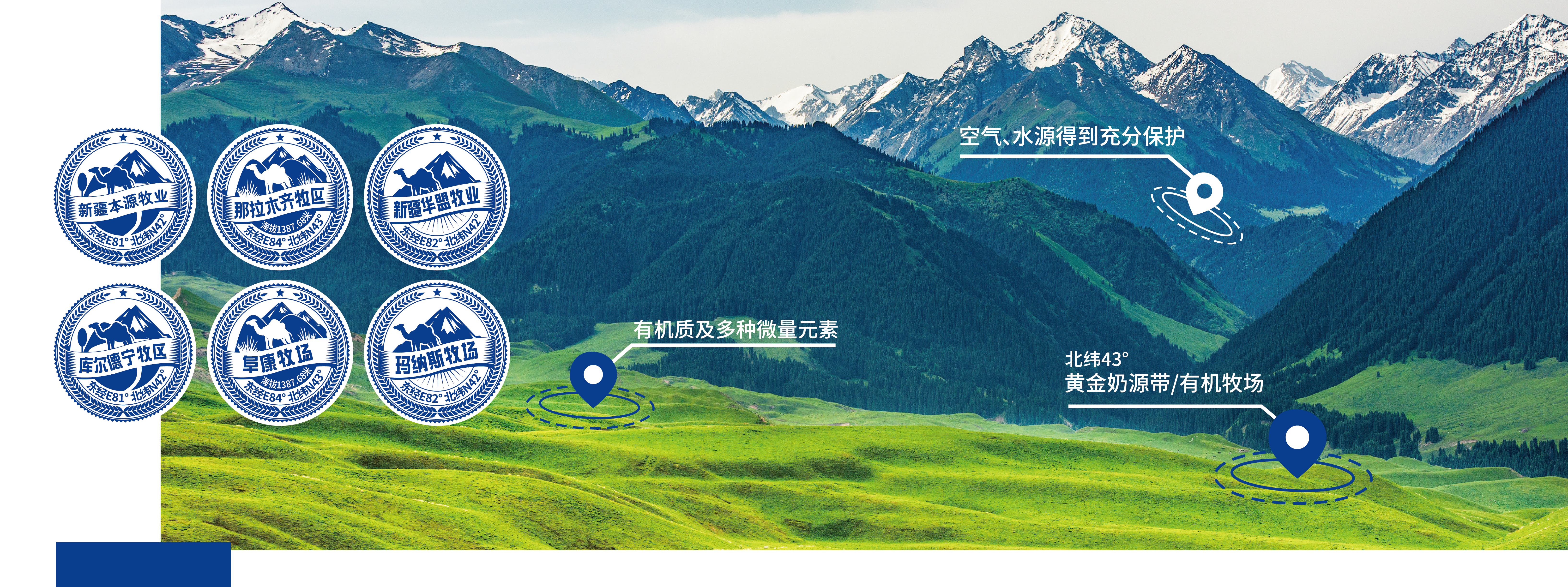 集團始終堅持以奶源地建廠的原則,沿古絲綢之路分別在陜西、甘肅、青海、新疆、哈薩克斯坦等建有自己的乳制品加工廠;從全球核心奶源甄選到國外多工廠的建設布局,持續完善“從牧草到奶杯”的全產業鏈發展模式。樹立中國新疆特色乳行業標桿企業。致力把中國特色乳推向世界!